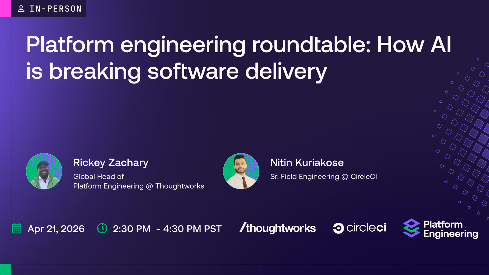 Nitin Kuriakose, Sr. Field Engineer at CircleCI, specializes in helping enterprise engineering teams design and optimize CI/CD pipelines that accelerate software delivery at scale. With over a decade of experience spanning DevOps, platform engineering, and delivery automation, he partners with organizations to modernize their build and release workflows, reduce pipeline bottlenecks, and establish platform engineering practices that improve developer productivity. Nitin works directly with engineering leaders across industries to implement continuous delivery strategies, streamline testing infrastructure, and adopt delivery metrics that drive measurable outcomes. His hands-on expertise in CI/CD architecture, pipeline optimization, and developer experience enables organizations to ship software faster and more reliably while building the foundation for AI-driven development workflows.Nitin holds a Bachelor’s degree in computer science with a specialization in Software Engineering practices, and before CircleCI, Nitin worked at Uber Technologies and Coin Inc as a software test engineer. He lives in the Bay Area and loves home automation.