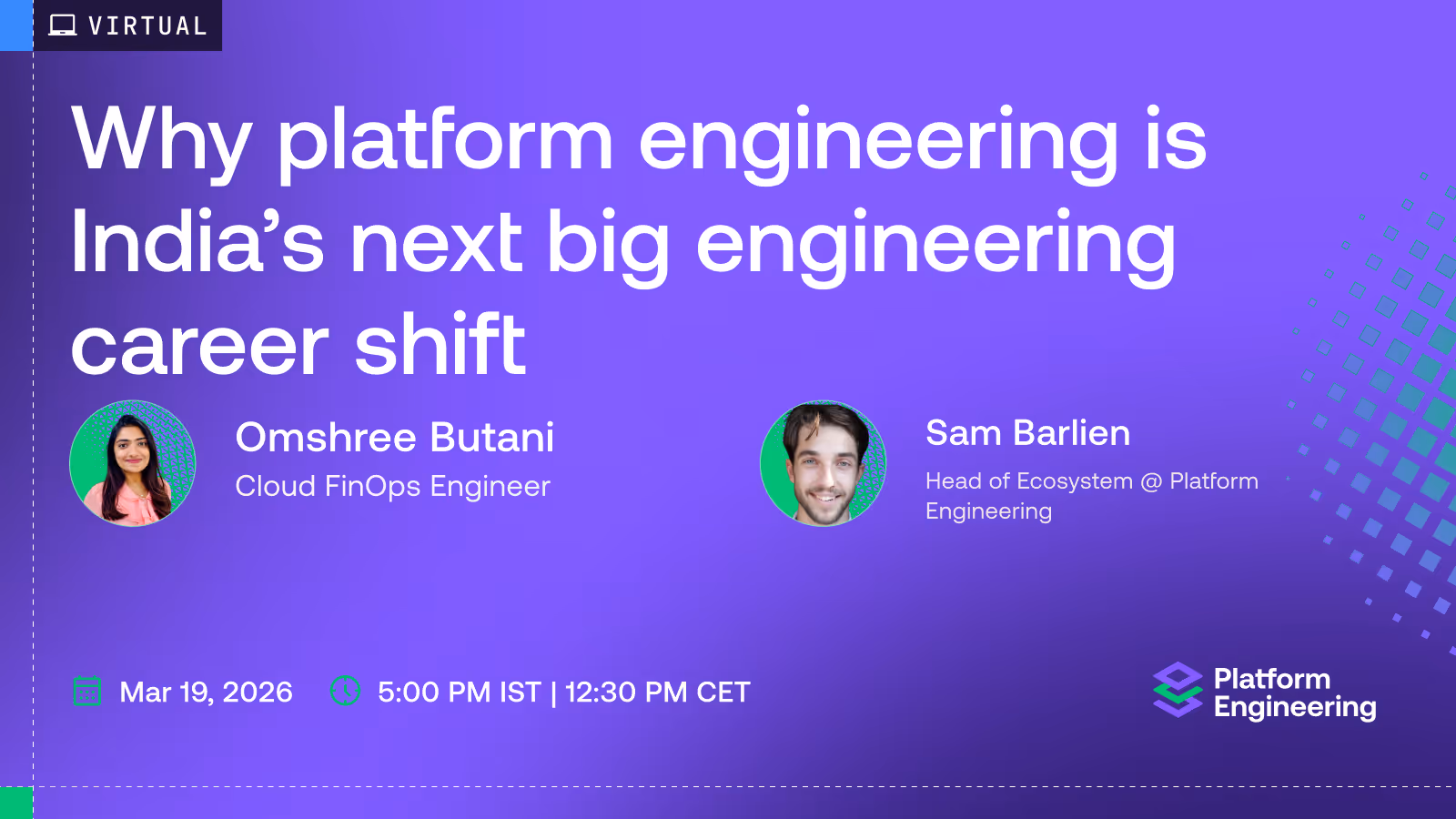 Sam Barlien is a community organiser for the Platform Engineering Community. He is a tech nerd, and has been involved in tech communities for more than 10 years. He helps manage Platform Weekly, co-hosts PlatformCon, and drives the community Ambassador program, blog and Youtube channel.