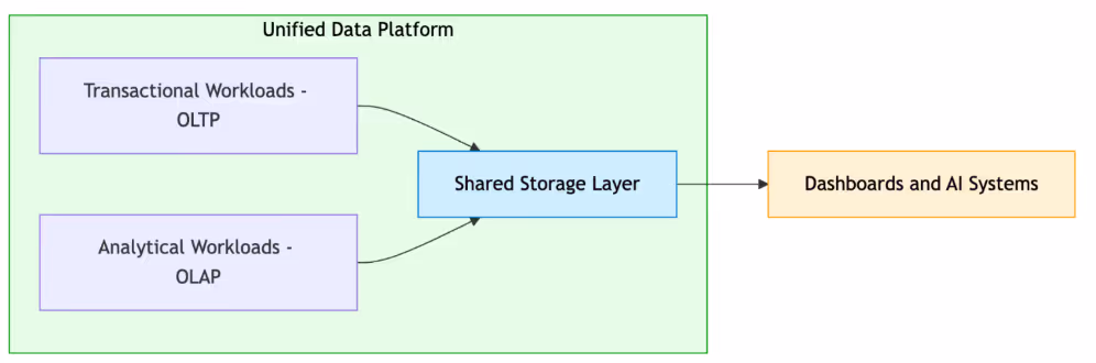 This shift is possible because the underlying architectural lines are blurring. Modern systems blend transactional and analytical workloads over a shared storage layer that supports both types of computation. By bringing analytics closer to where data already resides, these designs either eliminate or greatly simplify the data movement that once slowed insight.