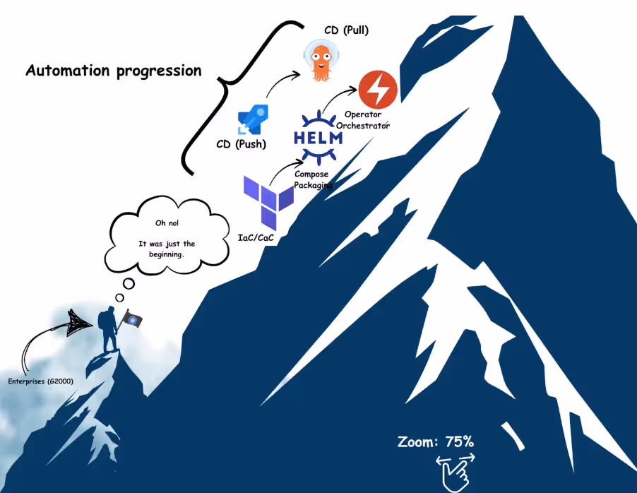 But that wasn’t the final step. Operators and orchestrators continued to evolve alongside Kubernetes, optimizing resource provisioning and management. This progress also changed how we handle deployments. What began with scripts evolved into CI/CD pipelines, initially relying on push-based deployment methods.