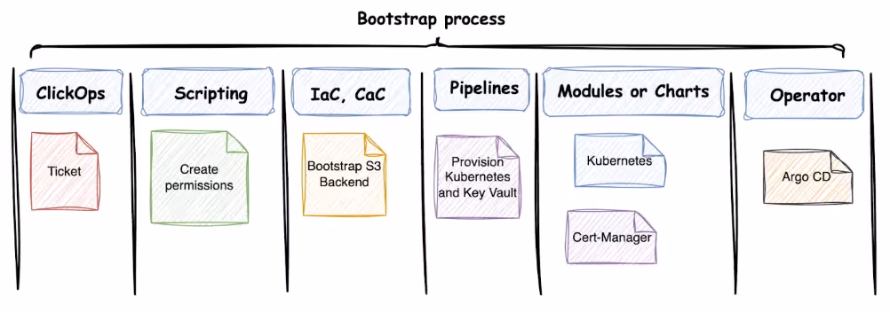Here’s how I approach it: I ask the team to explain their bootstrap process in simple terms. I then break it down into individual building blocks and organize them into a very simple table.