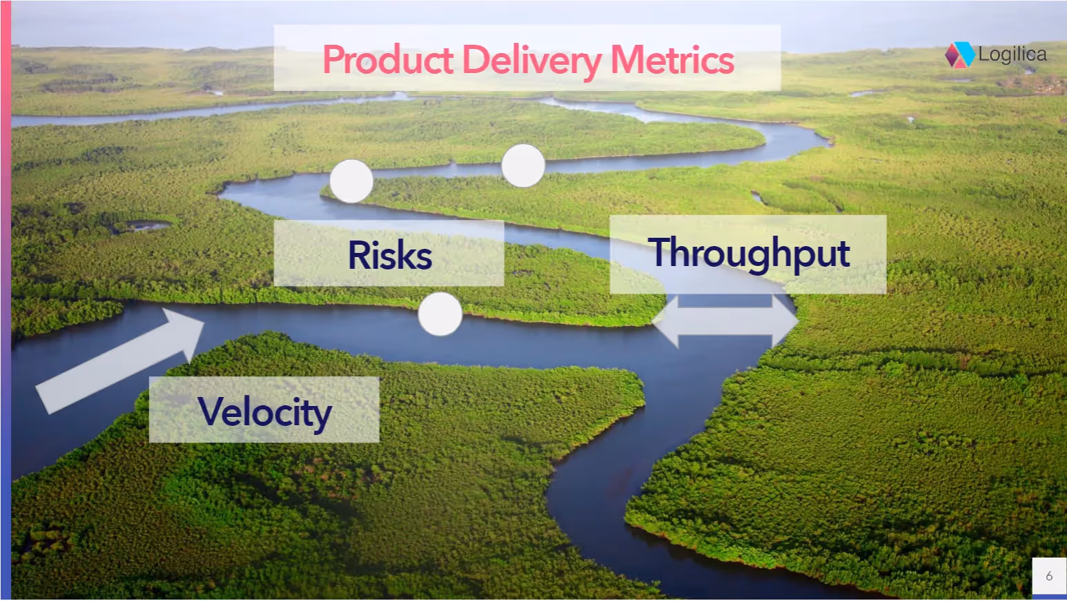“We like to have this flow view to help us understand velocity, or how fast we’re moving, and our throughput, or how much capacity we have to deliver. Then there are the risks around the process where we might fall over or something unforeseen happens. There’s risk in infrastructure, team composition, or burnout if we’re asking teams to deliver too much in velocity or throughput.”