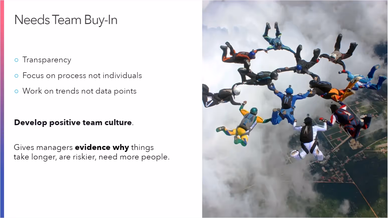 Similarly, organizations need to build a culture of transparency to have that context. Ralf adds, “Teams often say things like “We’ve told you before, the bottleneck is because we don’t have enough people to review the code”. Teams need to give a reason why things are the way they are.”